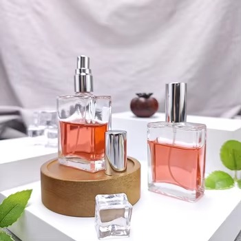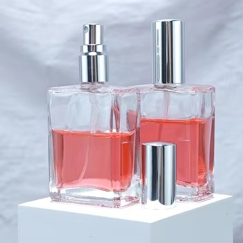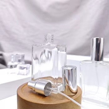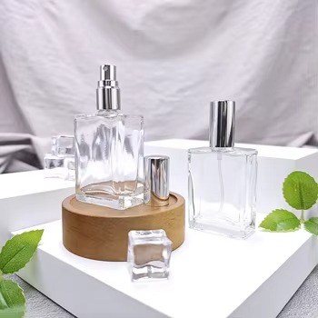 Made of high-transparency glass, the bottle body is square with neat lines and transparent texture; the metal spray pump head is available in silver tone