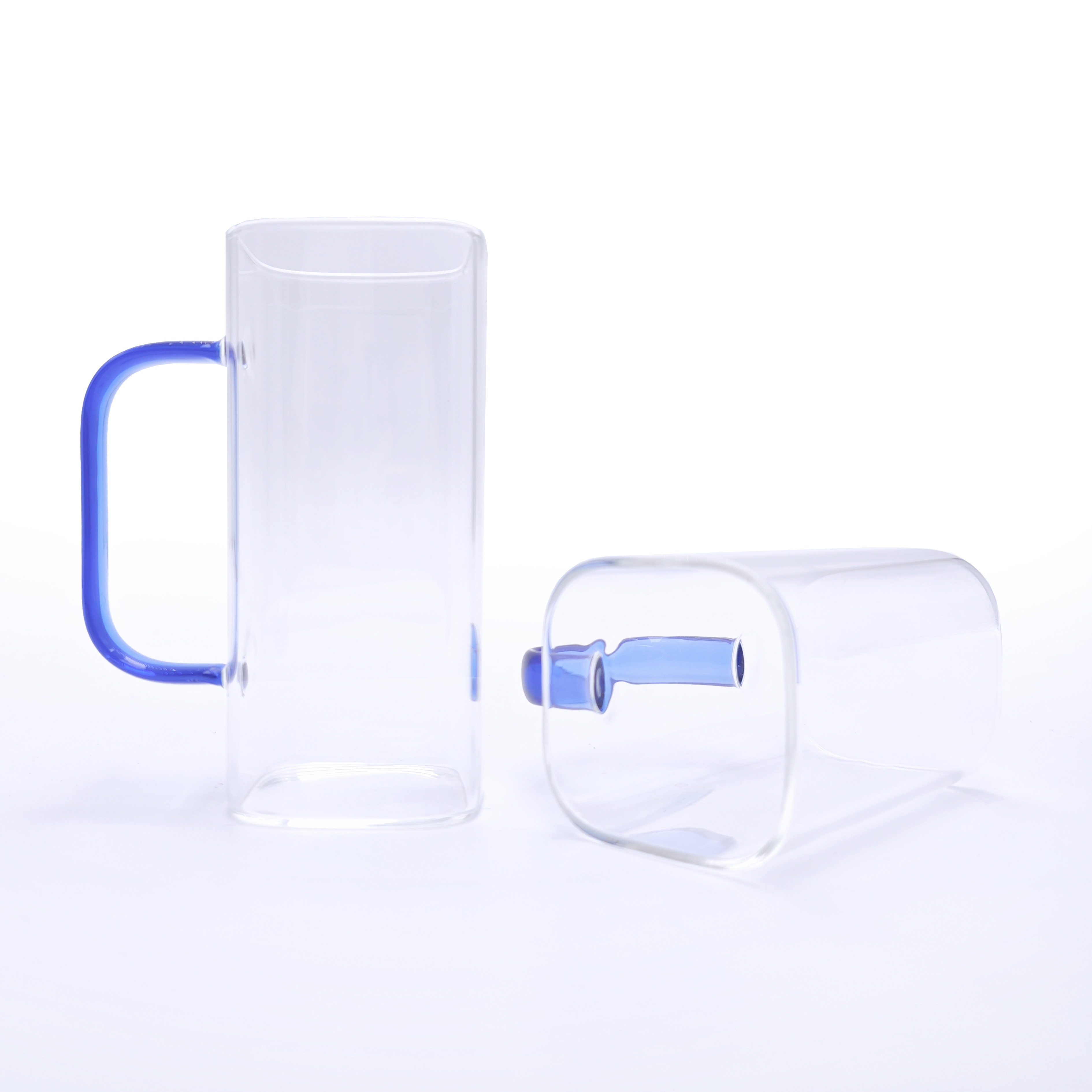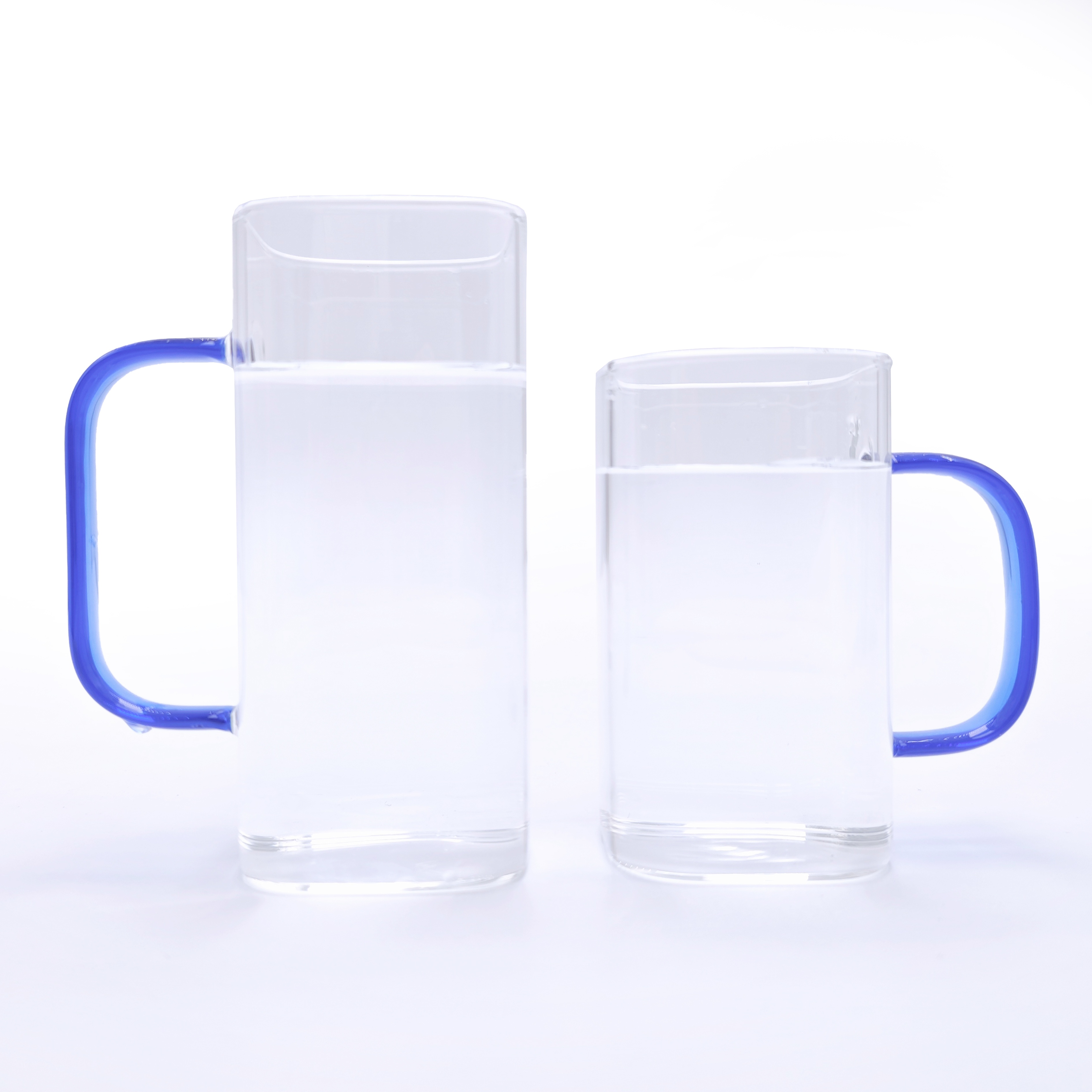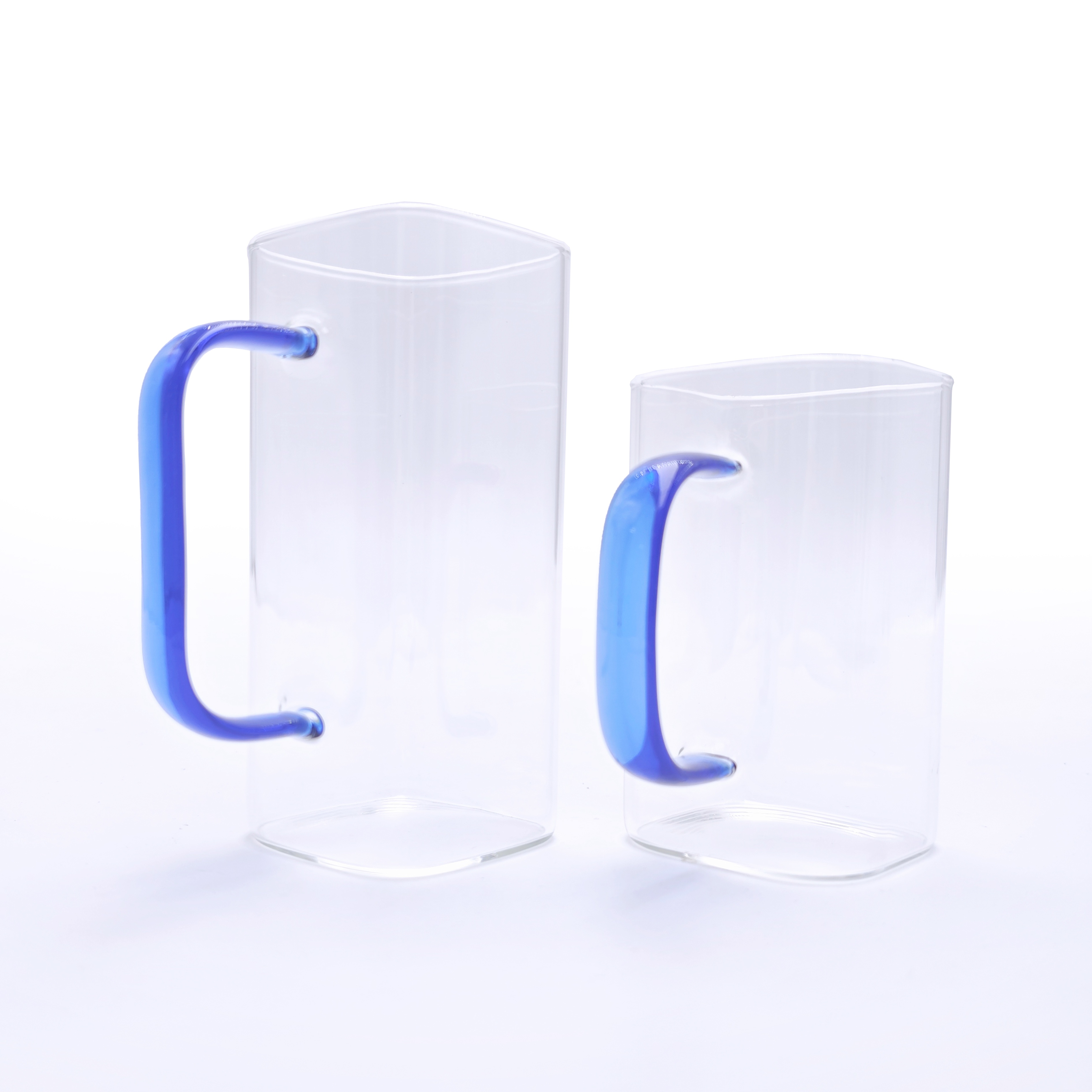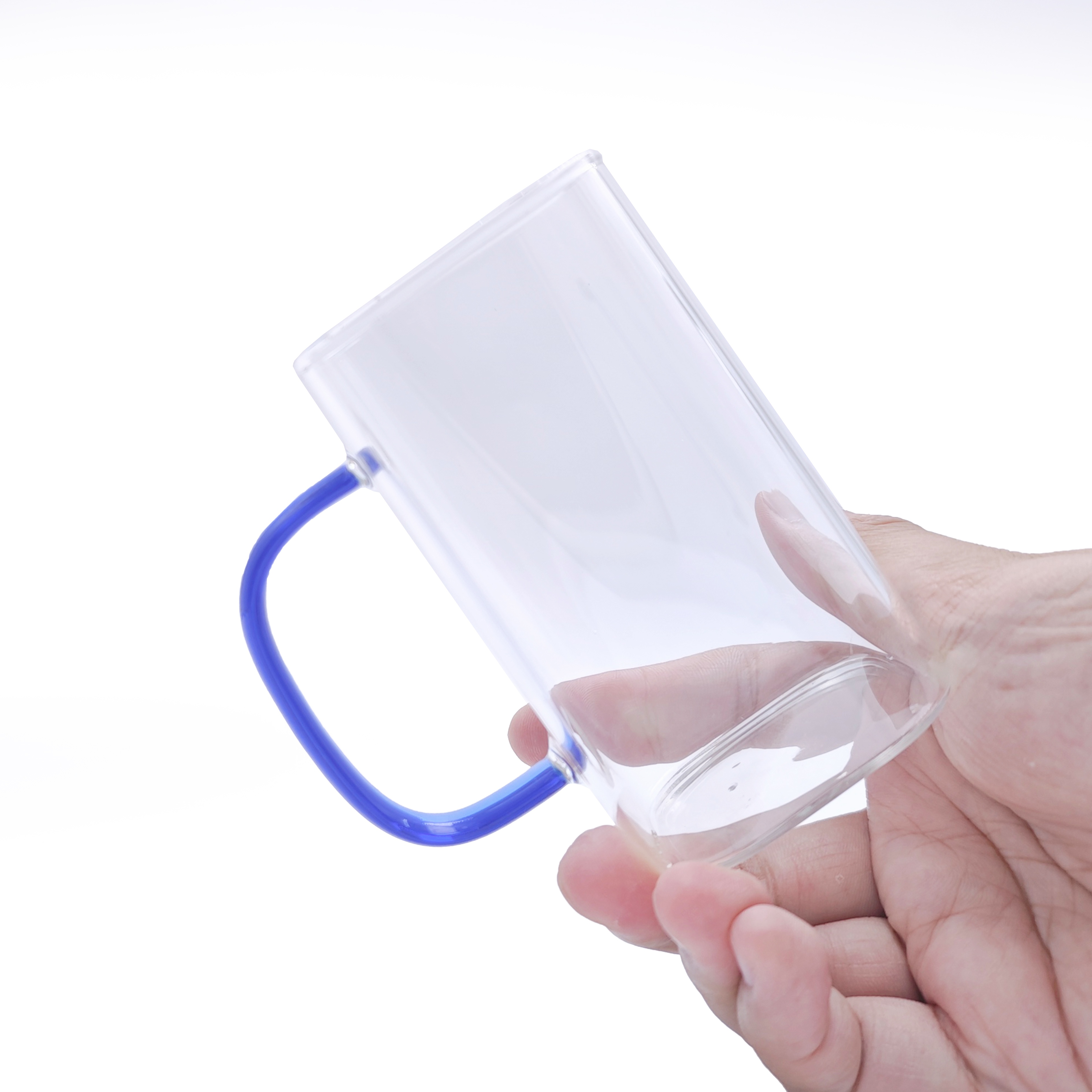 Borosilicate Color Handle Square Shape Modern Summer Drinking Glass Cup for Juice Cold Drinks Milk Mug
