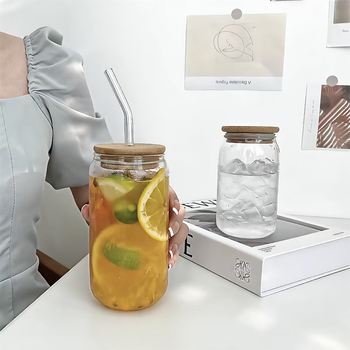Our glass water bottle is fresh and practical! Made of high-quality transparent glass, you can clearly see the drink inside. With a natural bamboo lid, it's eco-friendly and seals well to keep dust out. The included straw makes drinking more convenient and elegant.